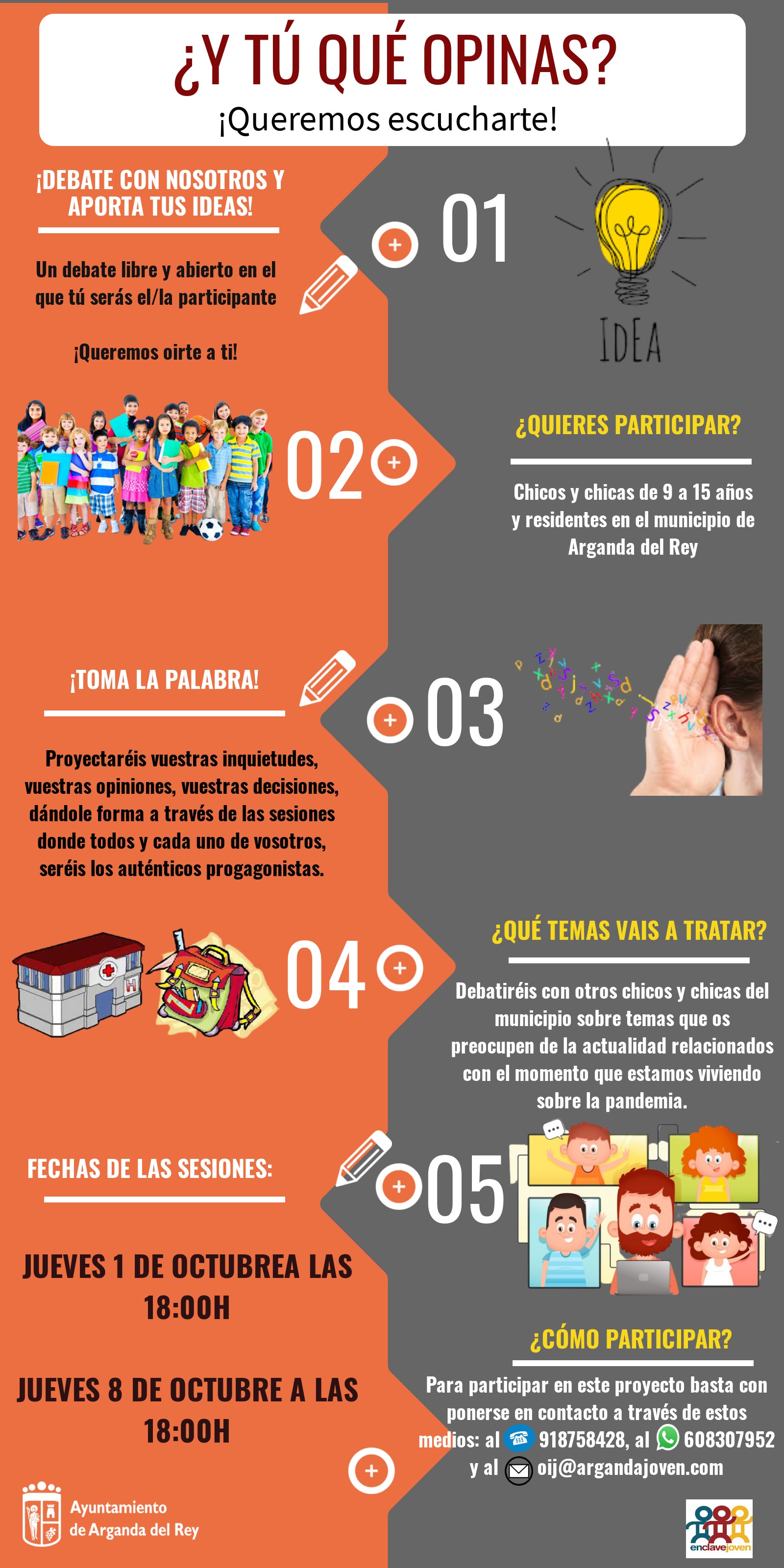 Durante el mes de octubre continuará el nuevo proyecto “¿Y tú qué opinas?” del Enclave Joven, dirigido a chicos y chicas de 9 a 15 años residentes en #Arganda del Rey, que comenzó el mes de agosto.